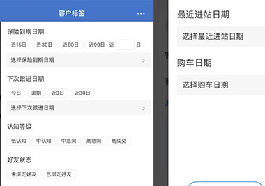 根据客户的车辆属性和行为,为客户打上标签,方便顾问筛选客户,并根据不同的标签,对客户进行差异化跟进。