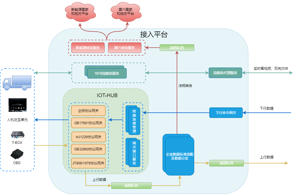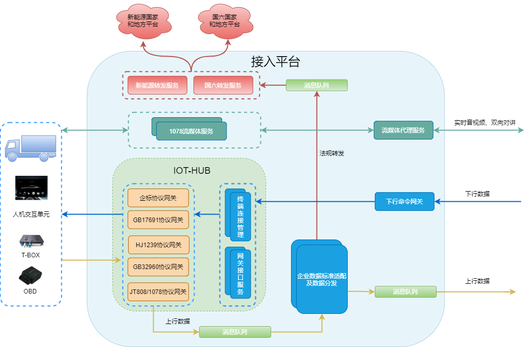 2)支持多协议的接入适配:国标32960、808、17691、HJ1239、企标自定义ACP、MQTT协议等。