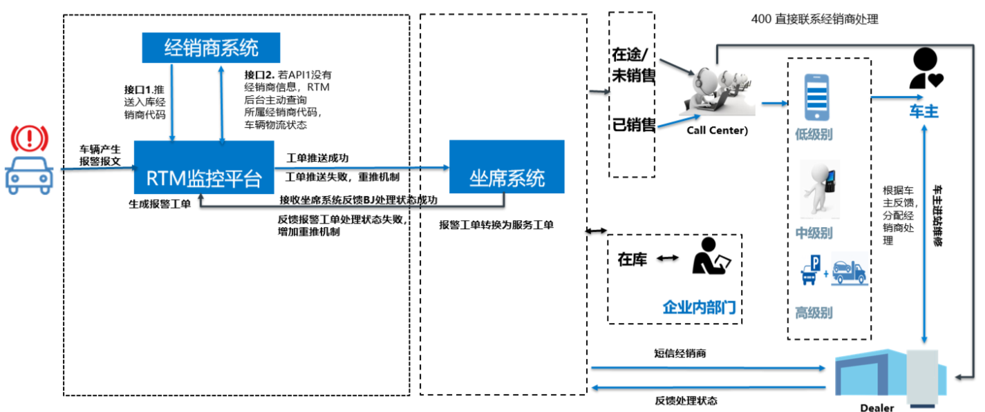 车辆会产生报警报文,需通过 RTM 平台生成工单并推送至相关系统处理。为确保报警信息高效流转、及时处理,需明确工单生成逻辑及流程,保障车辆问题快速响应。