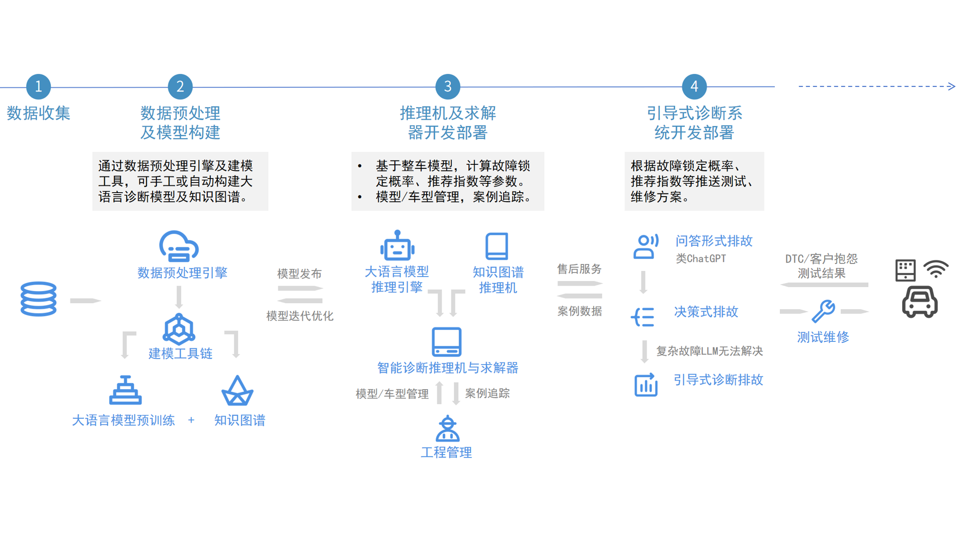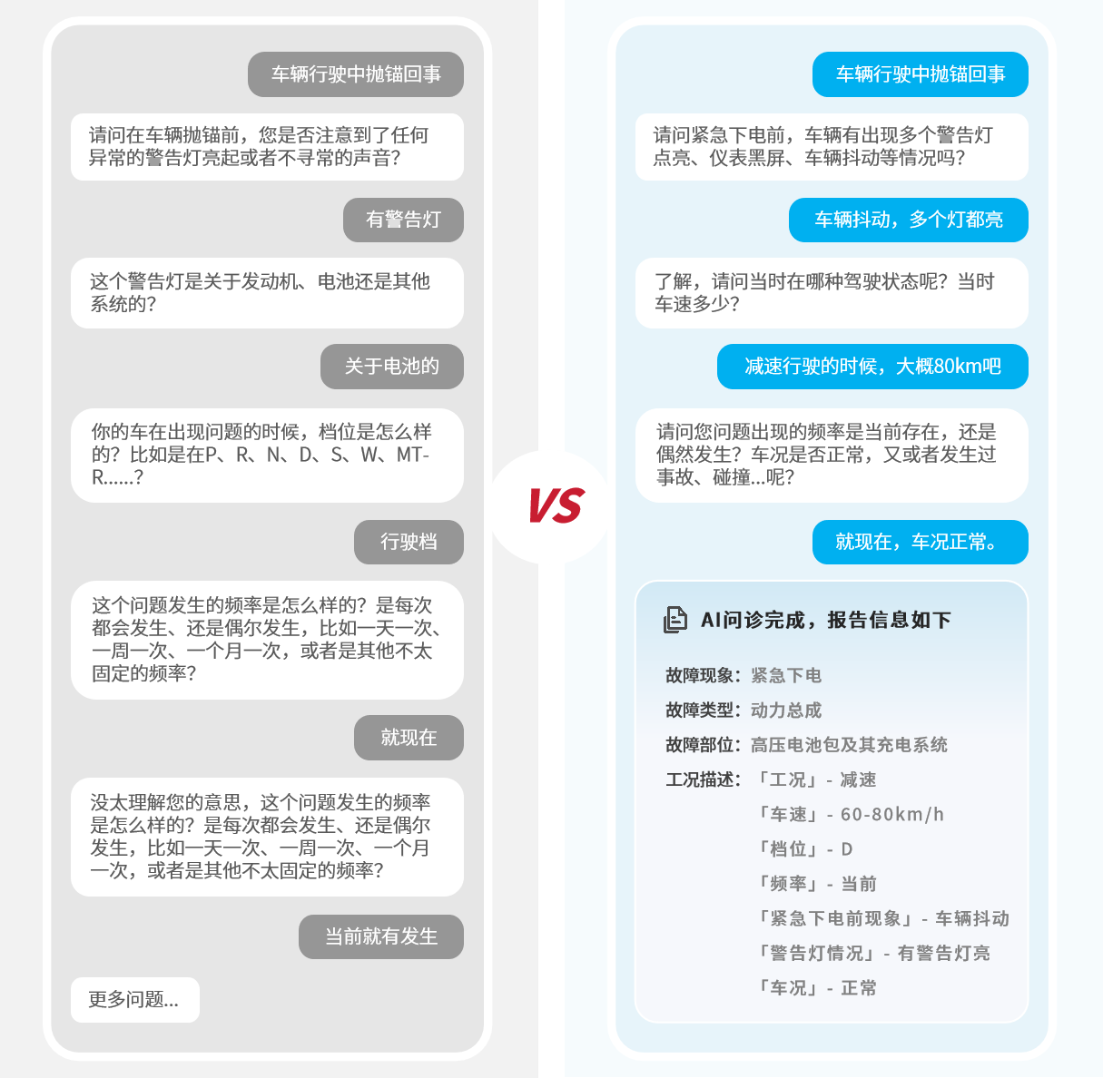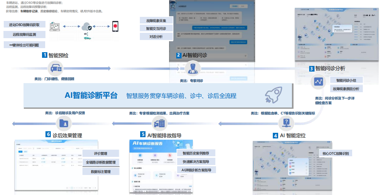 传统的车辆诊断业务过程定位复杂,存在数据散落、依赖人工排查效率低、手册内容多执行困难等问题。此外,故障判断逻辑、解决方案难以标准化沉淀,导致同一故障在不同门店重复排查,难以实现经验复用,制约了整体服务能力的提升。