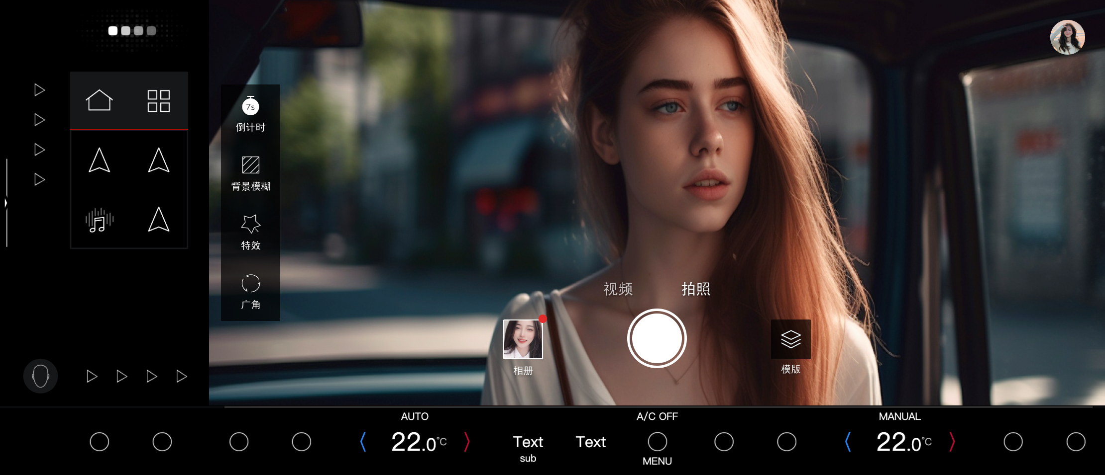 1)用户:车内车外照片、视频随时记录,多种拍摄模式适配车内不同场景;多种美化特效、视频模版,随手就是大片;时光故事,发现精彩瞬间,自动生成美好回忆。